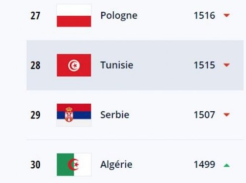 تصنيف الفيفا : المنتخب الجزائري في المركز ال30 عالميا والثالث قاريا