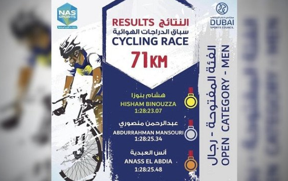 سباق الدراجات (دورة ند الشبا الرياضية-الامارات): عبد الرحمان منصوري في المركز الثاني
