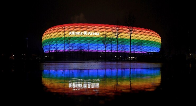 ورفض الاتحاد الأوروبي لكرة القدم “يويفا”، خطط ميونخ لإضاءة ملعب “أليانز أرينا” بألوان قوس قزح، وقال في بيان له أمس الثلاثاء: “اليويفا منظمة محايدة سياسيا ودينيا”، وأضاف “بالنظر إلى السياق السياسي لهذا الطلب الذي يعتبر بمثابة رسالة تهدف إلى قرار اتخذه البرلمان الوطني المجري، يعلن الاتحاد الأوروبي رفضه لهذا الأمر”.