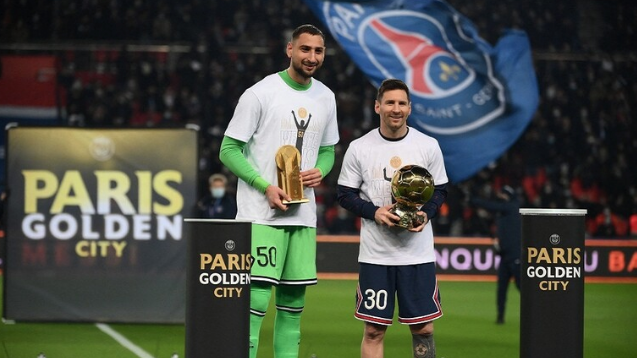 واحتفل سان جيرمان خلال الحفل بنجميه الأرجنتيني ليونيل ميسي لفوزه بجائزة الكرة الذهبية لأفضل لاعب في العالم لعام 2021، والإيطالي جيانلويجي دوناروما لفوزه بجائزة “ياشين” لأفضل حارس في العالم لعام 2021.